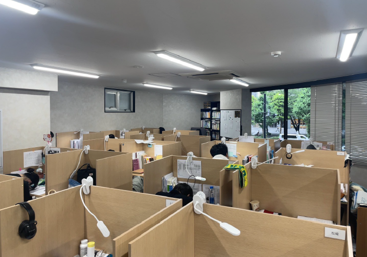 メディカルウイングの自習室は完全指定席です。席が空いていない等の心配は一切なし。毎日決まった場所で、自分の学習リズムを習慣化することができます。自分だけの落ち着いた環境で集中しが学習が可能です。共に頑張る仲間の背中に刺激を受けながら、多くの時間を過ごす学習スペースはメディカルウイングの自慢の一つです。